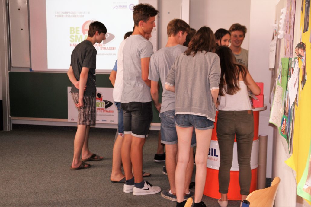 Initiator dieser Informationsveranstaltung war neben Mobil in Deutschland e.V. und BE SMART! das Staatsministerium für Bildung und Kultus, Wissenschaft und Kunst, vertreten durch den bayrischen Staatssekretär Georg Eisenreich. In einem Grußwort betonte er zudem nochmal seine persönliche Überzeugung für die Kampagne BE SMART!. Nach einer Diskussionsrunde, bei denen Schüler Fragen an die Experten stellen konnten, folgte der praktische Teil. Verschiedene interaktive Stationen, die in der Schule aufgebaut waren, boten die Gelegenheit sich näher mit dem Sachverhalt „Handy am Steuer“ zu beschäftigen. So konnte man beispielsweise seine Reaktionsfähigkeit mit dem Smartphone an Fahrsimulatoren testen, an Parcours teilnehmen oder in kleiner Runde über kritische Fallbeispiele debattieren.
